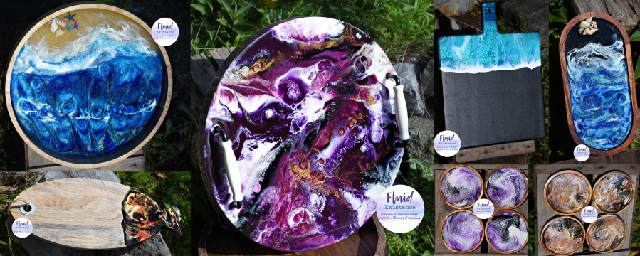 Through the use of vibrant pigments, paints and alcohol inks all incorporated into resin, unique pieces are formed that will always be individual and never found duplicated anywhere.